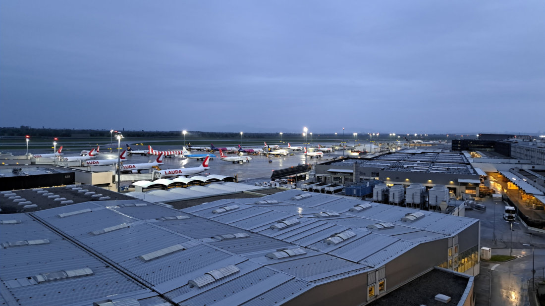 Gegenlicht. Hauptsächlich nutzte ich das Parkhaus 3 und je nach Anflug das Parkhaus 4.